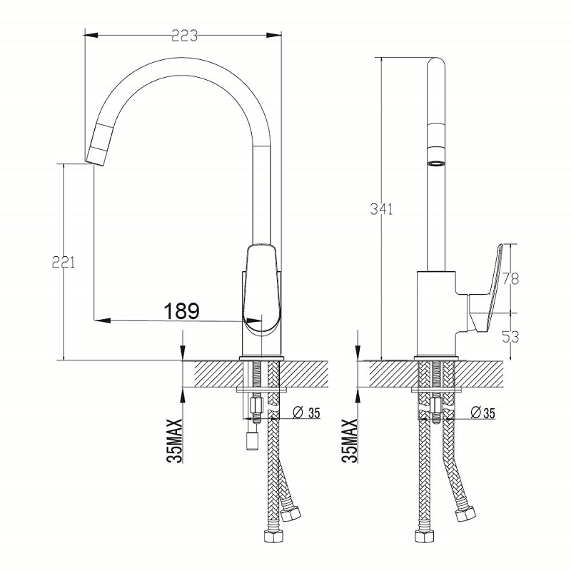 - Гибкая подводка из безопасного и нетоксичного каучука (EPDM) в оплетке из нержавеющей стали.