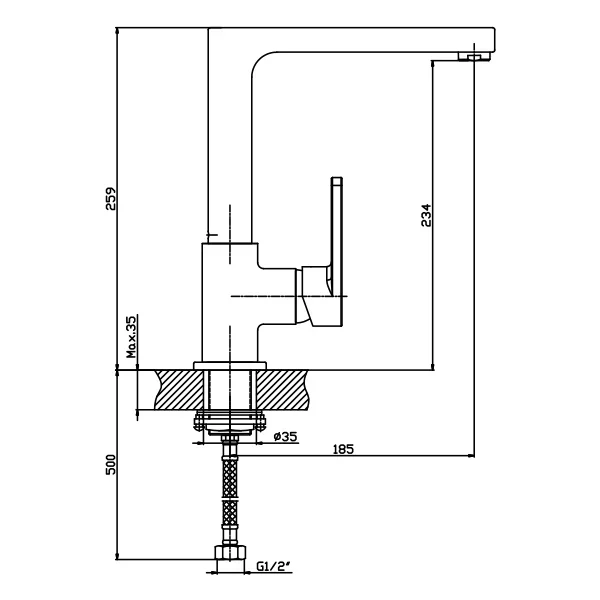 - Стандарт подводки: 1/2 дюйма.