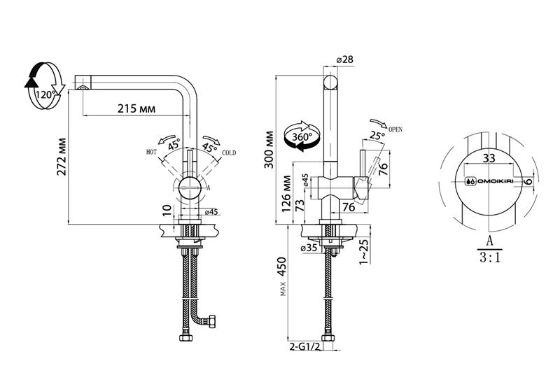Смеситель для кухни Omoikiri Akashi OAK-CR-35. Цвет: хром.