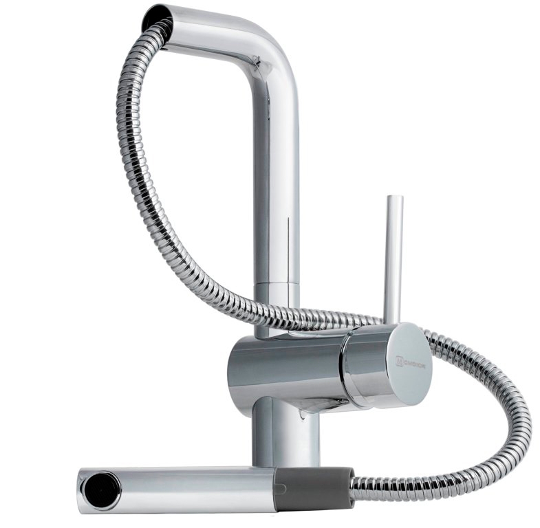 Стильный и удобный в использовании смеситель подходит для большинства кухонных интерьеров в современном стиле.
