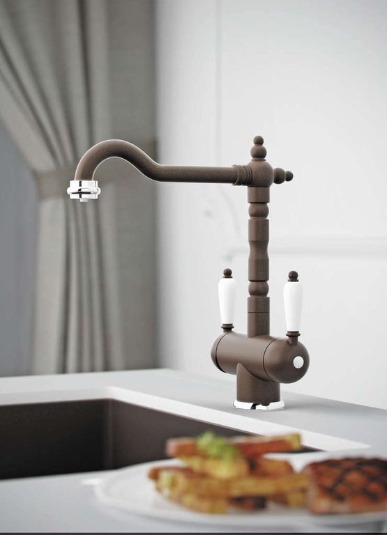 Красивый и удобный в использовании смеситель подходит для большинства кухонных интерьеров в классическом или ретро стиле.