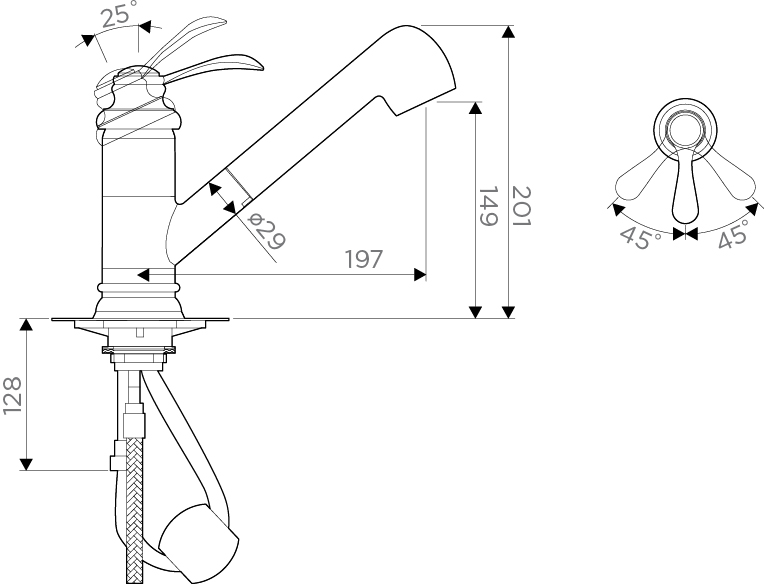 Изящный и удобный в использовании смеситель подходит для большинства кухонных интерьеров в классическом или ретро стиле.