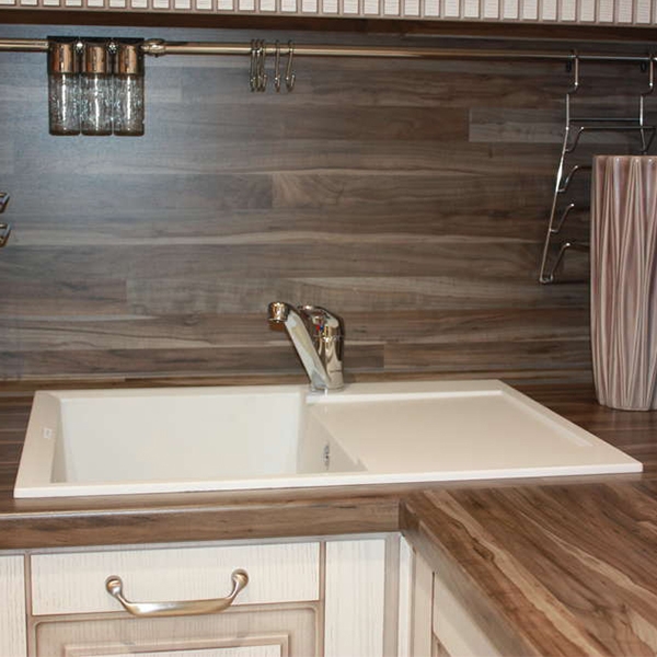 Компактный и удобный в использовании смеситель подходит для большинства кухонных интерьеров в современном стиле.