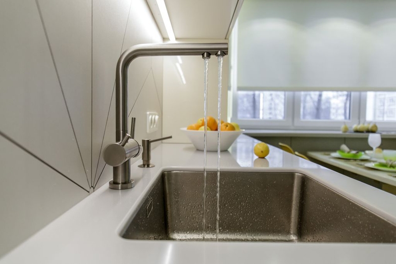 Стильный и удобный в использовании смеситель подходит для большинства кухонных интерьеров в современном стиле.