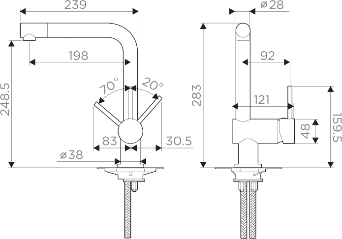 В комплекте поставки: смеситель, подводка, комплект креплений.