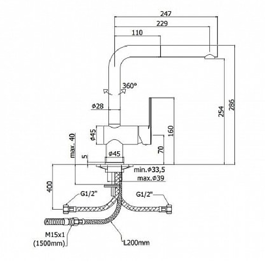 Высота излива, мм