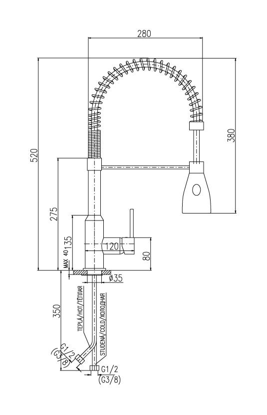 Rav Slezak Seina SE917.5 смеситель для кухни с душем на пружине.