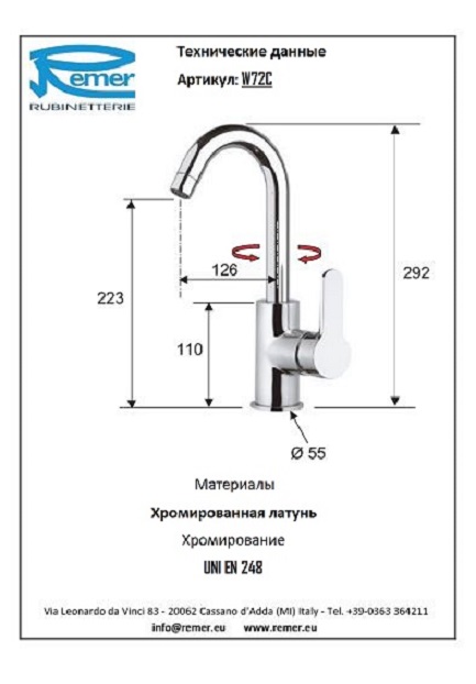 Смеситель для кухни Remer Winner W72C.