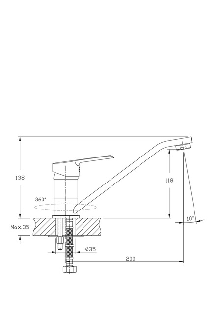 - Аэратор: угол наклона - 10 градусов, пластиковый с нержавеющим корпусом (поворотный).