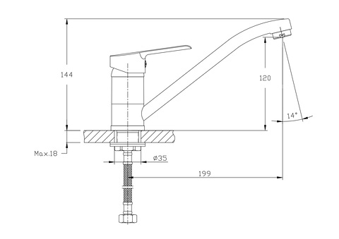 - Аэратор: угол наклона - 14 градусов, пластиковый с нержавеющим корпусом (поворотный).