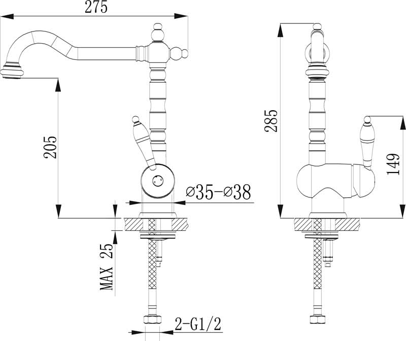 Однорычажный смеситель с поворотным изливом и аэратором, монтируемый в одно отверстие. Имеет долгий срок эксплуатации за счет качественных деталей, неприхотлив в уходе. Дополнит любой интерьер в классическом или ретро стиле.