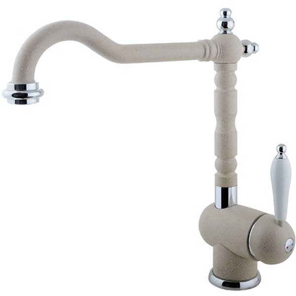 Однорычажный смеситель с поворотным изливом и аэратором, монтируемый в одно отверстие. Имеет долгий срок эксплуатации за счет качественных деталей, неприхотлив в уходе. Дополнит любой интерьер в классическом или ретро стиле.