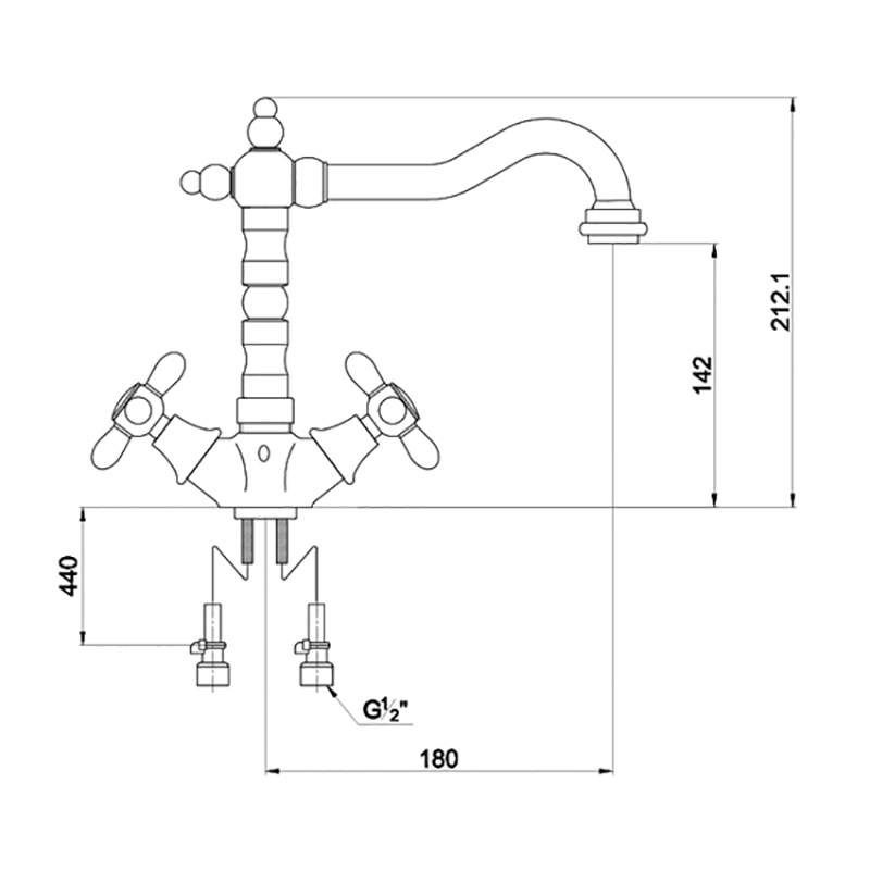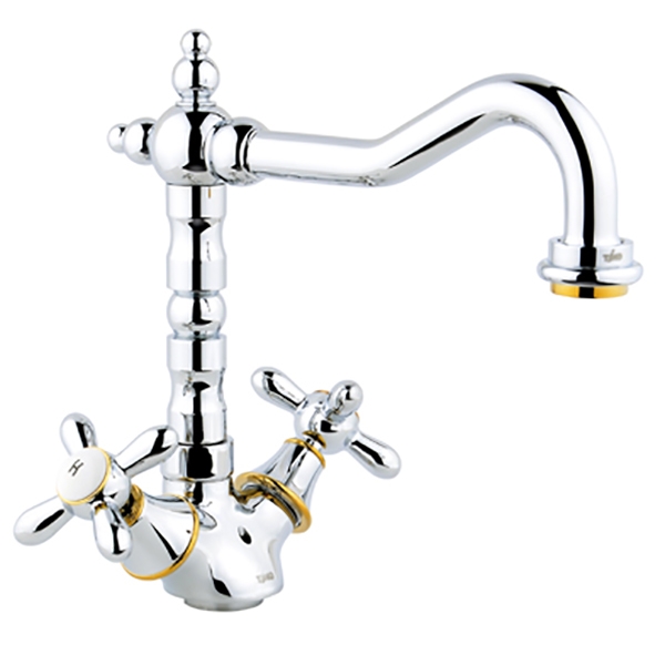 Двухвентильный смеситель с поворотным изливом. Имеет долгий срок эксплуатации за счет качественных деталей, неприхотлив в уходе. Станет прекрасным дополнением кухни.