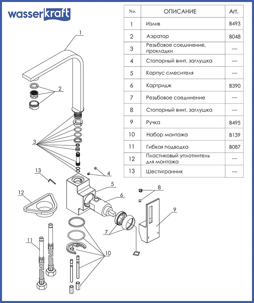 Смеситель для кухни Wasser Kraft Alme 1507.