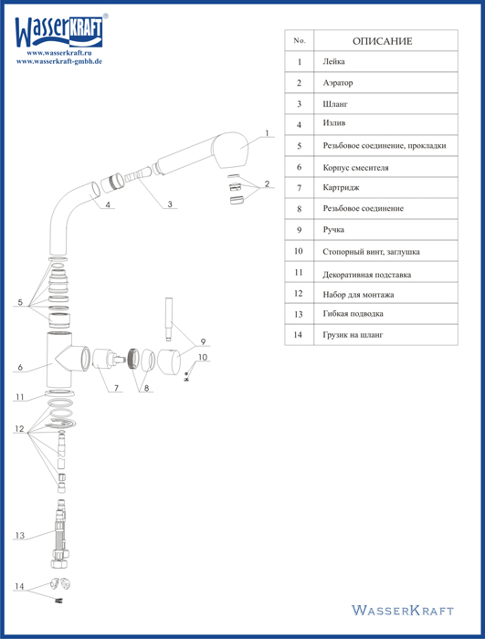 Смеситель для кухни Wasser Kraft Main 4166.