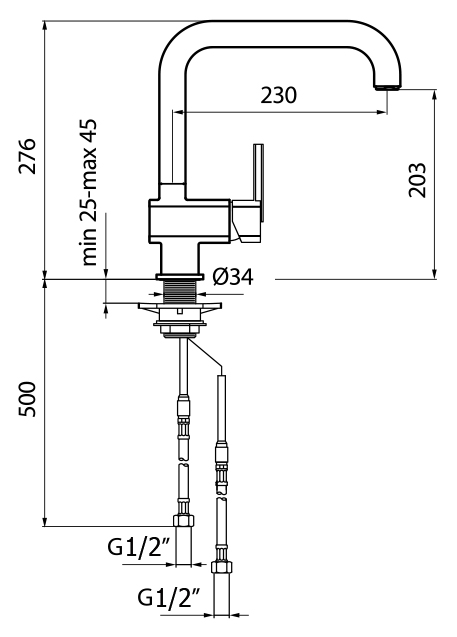 - Гибкая подводка G1/2 из нержавеющей стали длиной 37 см.