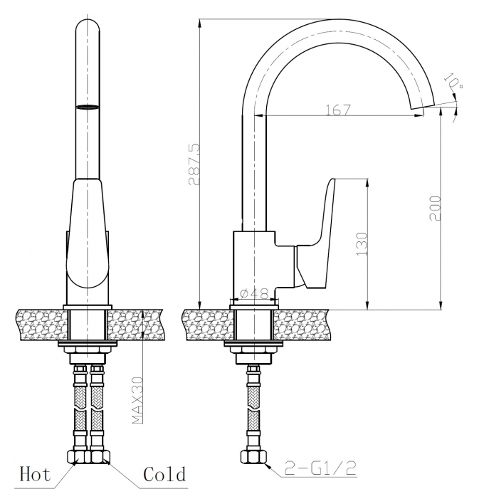 Однорычажный смеситель для кухни WeltWasser Oder 406 с поворотным изливом.