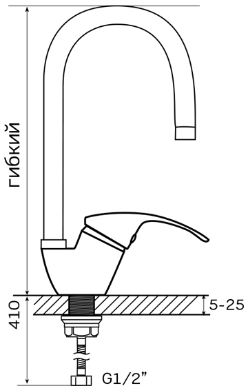 - Поворотный гибкий излив.