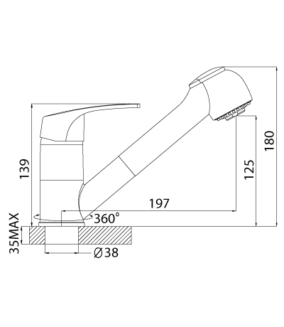 Смеситель Rossinka D40-25 для кухни. 2-х функциональная излив-лейка с пластиковым аэратором и гибким шлангом 1,2 м, керамический картридж 40 мм, гибкая подводка 30 см – 2 шт. Присоединительная группа для горизонтального крепления.