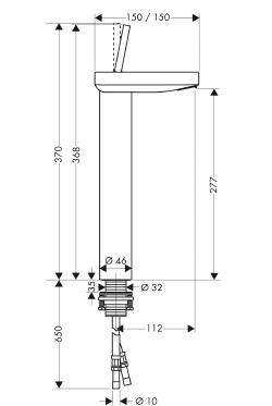 Смеситель для раковины Axor Starck X 10080000, однорычажный. Высота излива 277 мм, регулируемая ливневая струя, картридж джойстикового типа, ограничитель расхода воды до 5 л/мин. Совместим с проточным водонагревателем.
