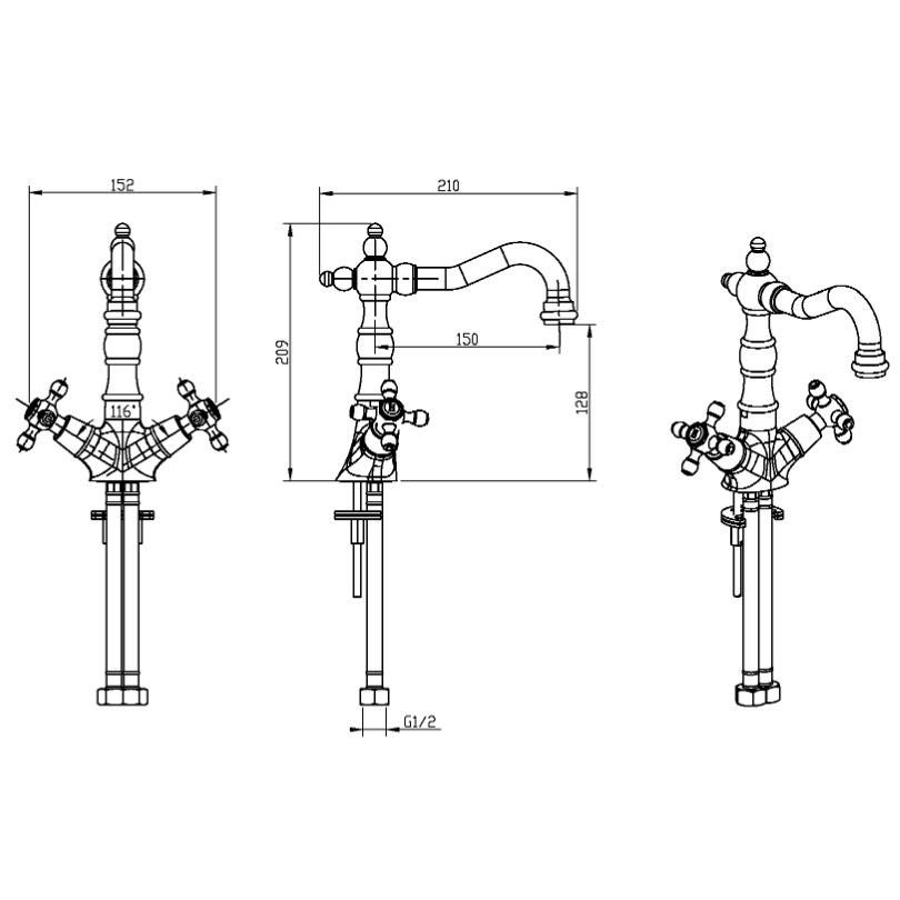 Смеситель для раковины Boheme Royal Cristal 292-Royal/CRST.