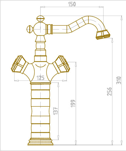 - Корпус смесителя изготовлен из качественного латунного сплава. Тщательное патинирование придает изделию великолепный блеск и цвет.