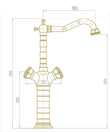 - Изысканные узоры на корпусе, ручках и носике смесителя.