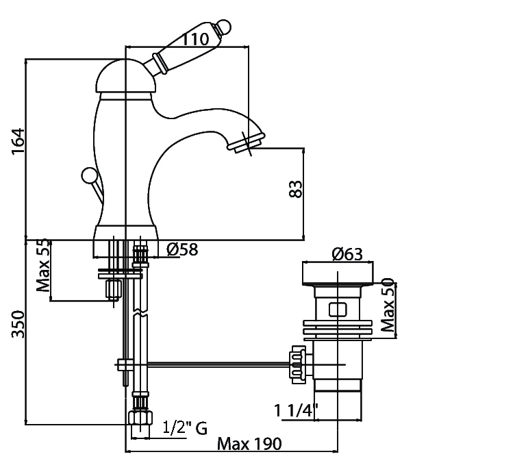 - Донный клапан: G 1 1/4.