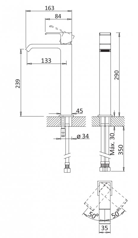 Высота излива, мм