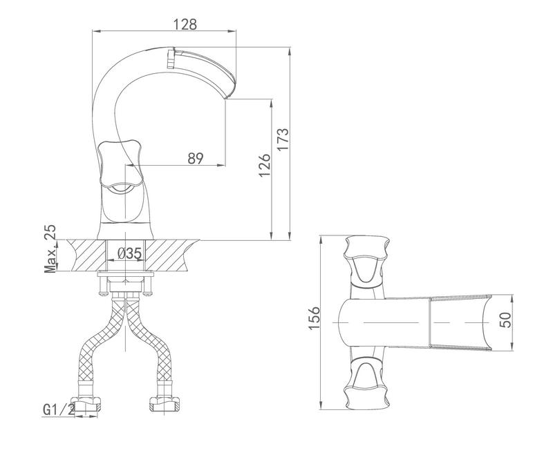 Смеситель для раковины D&K Grimm Hessen DA1382801 с каскадным изливом, двухзахватный, на одно отверстие для монтажа.