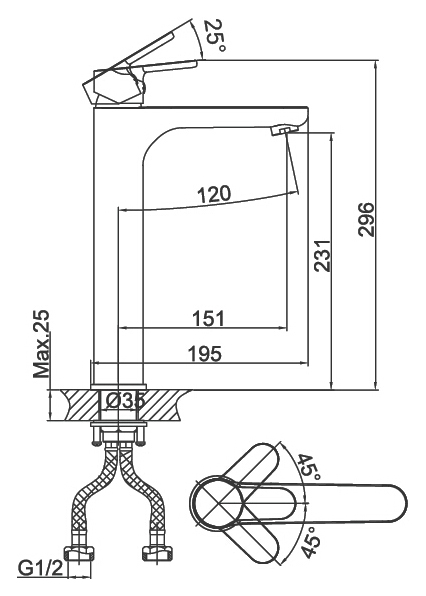 - Подключение: гибкая подводка G1/2.