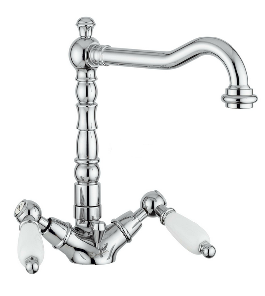 Смеситель Emmevi Deco Ceramic 121613 для раковины. Двухвентильный, на одно отверстие, с донным клапаном. Цвет хром.
