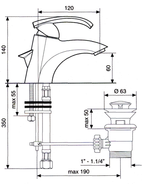 Смеситель Emmevi Ramses 72003 для раковины. Однорычажный, с донным клапаном. Цвет хром.
