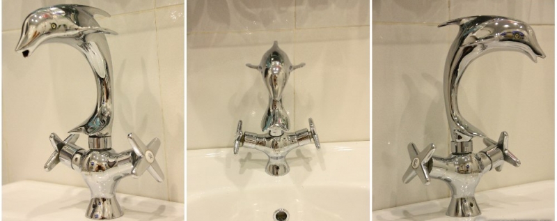 - Фиксированный излив изготовлен в виде дельфина.