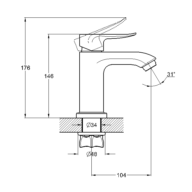- Аэратор с возможностью регулировки направления потока на 31 градус.