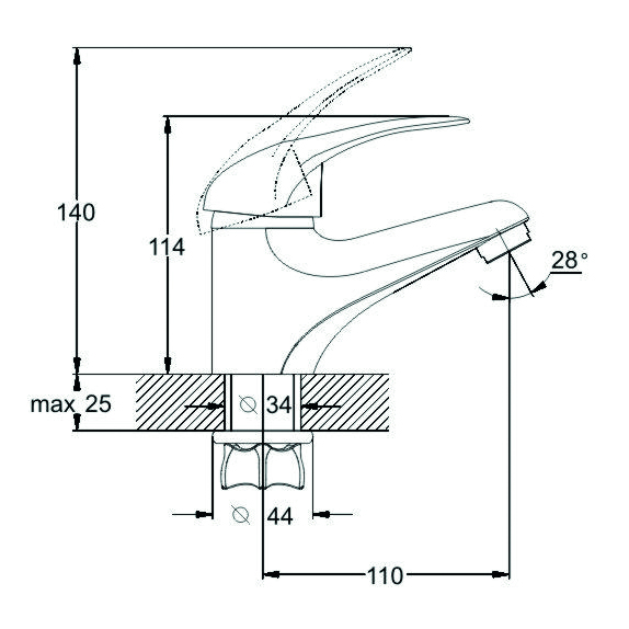- Керамический картридж 35 мм обеспечивает точную настройку температуры и напора воды.