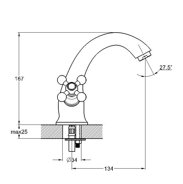 - Керамические кран-буксы с поворотом на 180 градусов обеспечивают точную настройку температуры и напора воды.