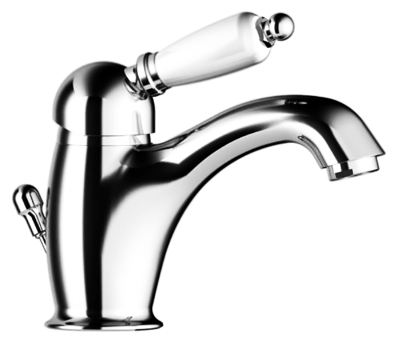 Смеситель для раковины Gattoni Orta 2746 однорычажный, с белой ручкой, с донным клапаном.