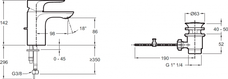 В комплекте поставки: смеситель, гибкая подводка, донный клапан.
