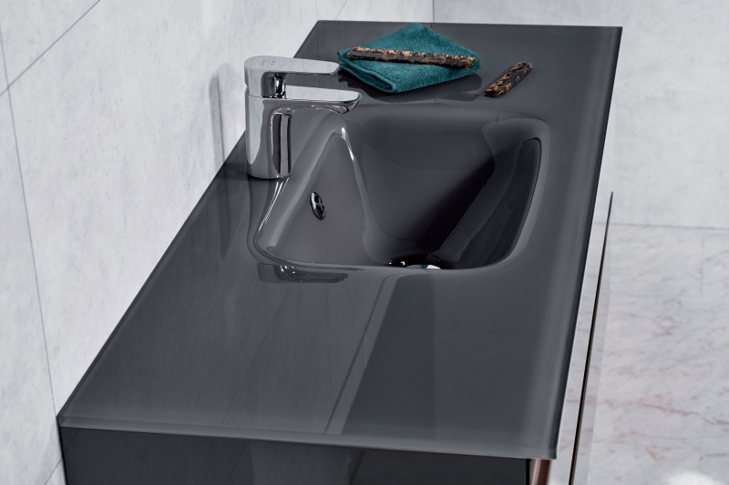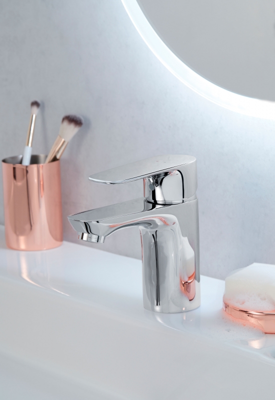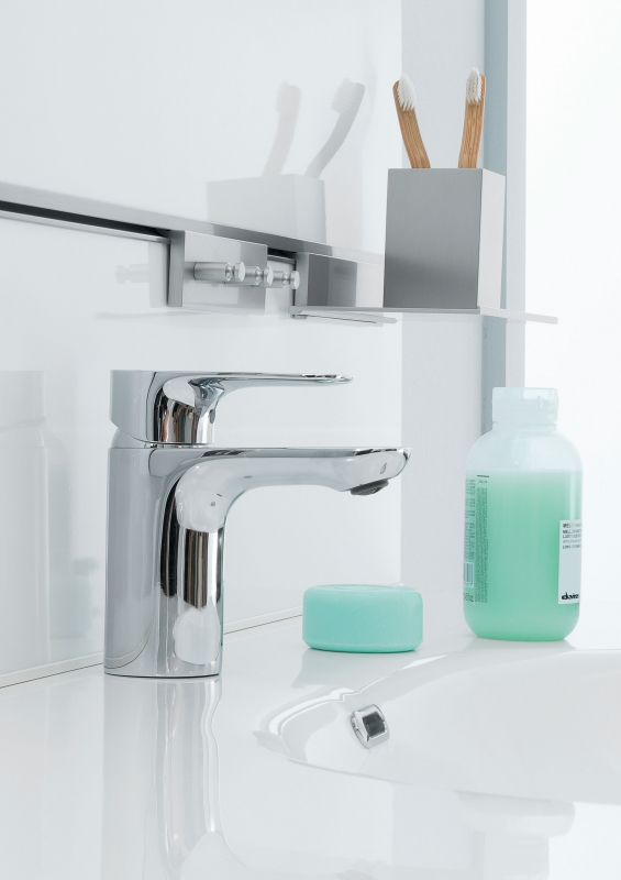 Однорычажный смеситель с фиксированным изливом, монтируемый в одно отверстие, отлично подходит для различных интерьеров ванной комнаты в современном стиле. Отличается гладкой поверхностью ручки и архитектурными формами корпуса.