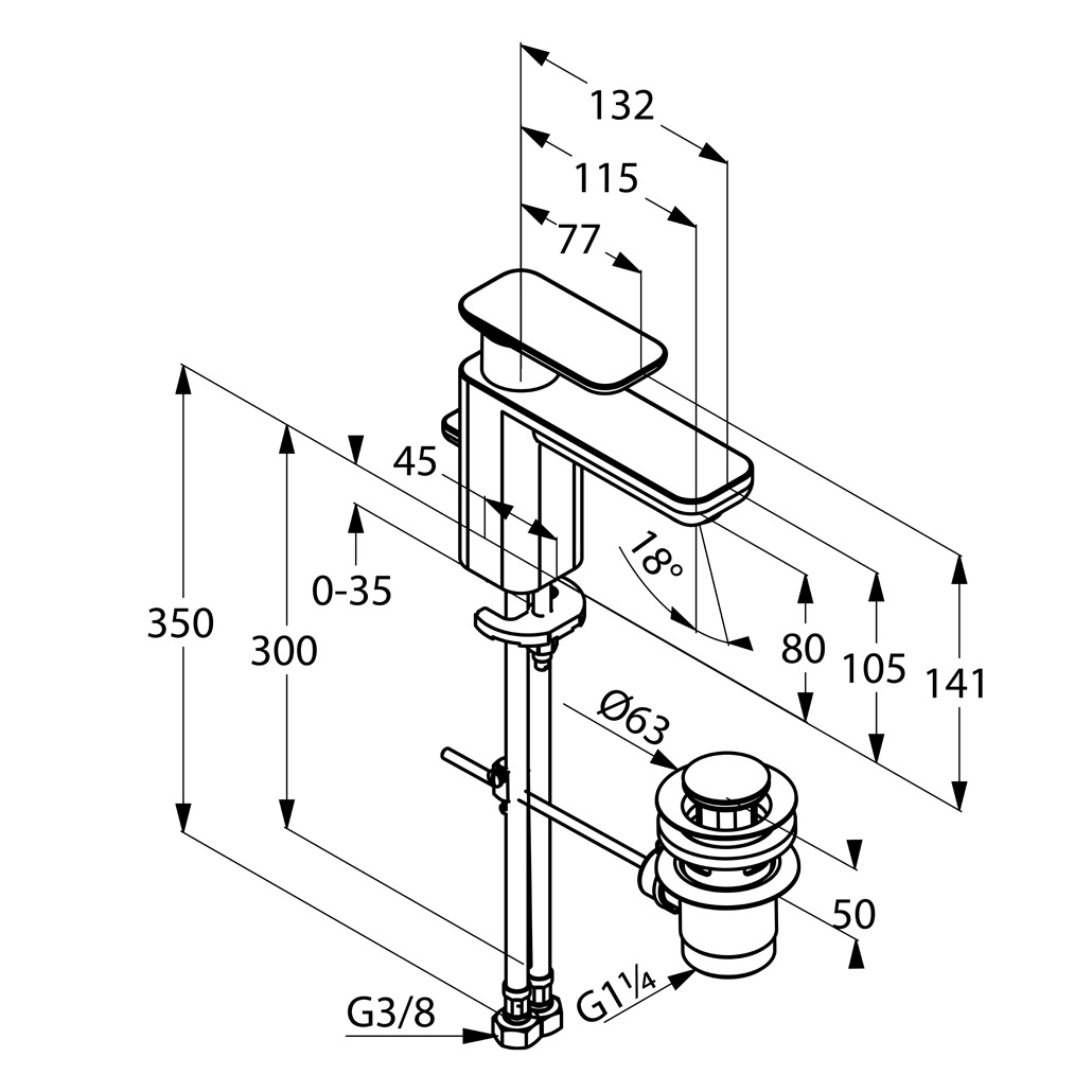 В комплекте поставки: смеситель с донным клапаном, подводка, комплект креплений.