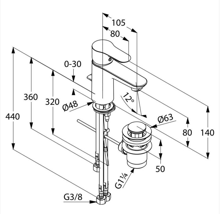 - Гибкая подводка G 3/8.