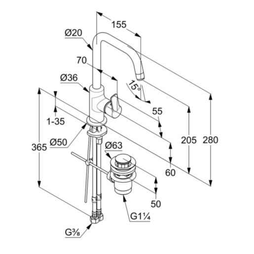 - Донный клапан G 1 1/4,