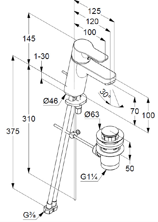 - Стандарт подводки: гибкий G 3/8.