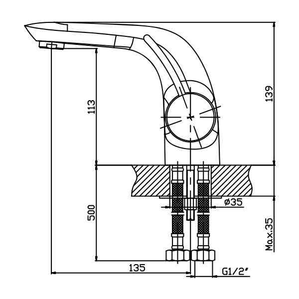 - Стандарт подводки: 1/2 дюйма.