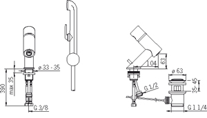 Oras Alessi 8502F однорычажный смеситель для умывальника со стационарным изливом, аэратором, ручным душем Bidetta и рычажным донным клапаном.