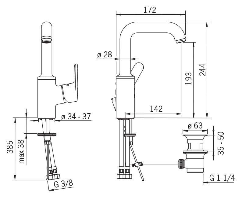 Смеситель для раковины Oras Aquita 2933F с донным клапаном, поворотным изливом и аэратором. Встроенные опции ограничения температуры и максимальной скорости потока воды. Горячая вода: max. +90°C, рабочее давление: 100 - 1000 kPa, расход воды (300 кПа) (с ограничителем потока): 0,1 л/с, уровень шума: I (ISO3822). В комплекте поставки: смеситель, донный клапан, гибкая подводка.