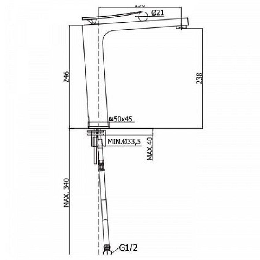 Высота излива, мм