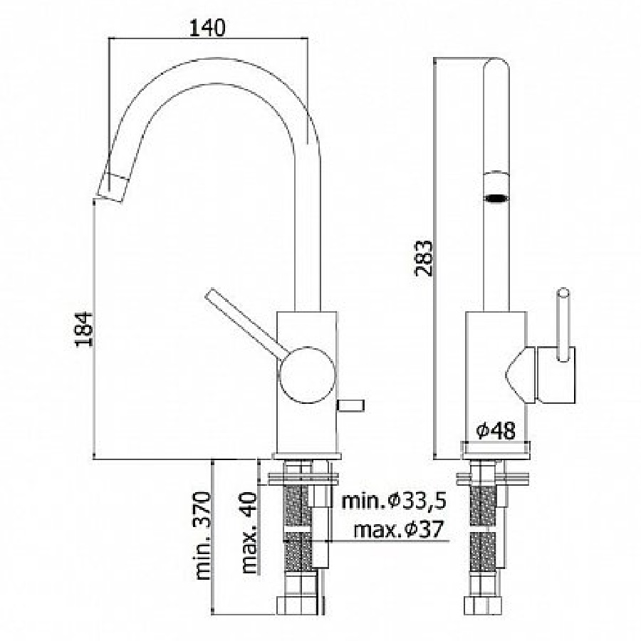 Высота излива, мм