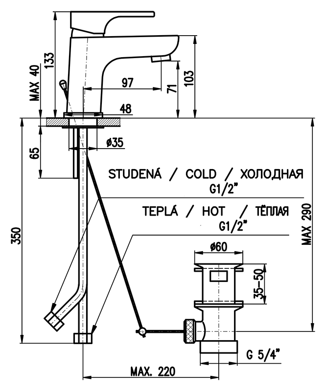 Высота излива, мм